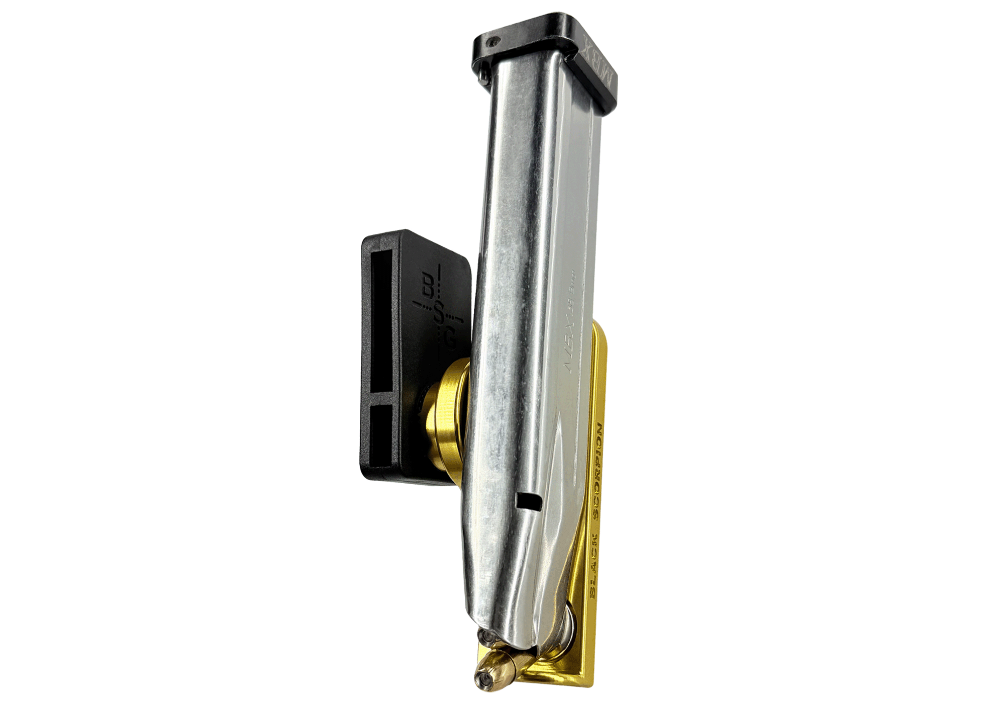The Quad Magnet 2011 PCC Universal Magazine Carrier is engineered to carry extended pistol and carbine magazines including 170mm 2011 magazines, Glock PCC mags, H K MP5, M P FPC, Springfield Kuna, Sig MPX, MasterPiece Arms, and CZ Scorpion magazines. Machined from 6066 aluminum for strength and low weight, the open frame supports bullets forward or bullets out orientation and four N52 magnets provide strong retention without noise or mechanical latches.