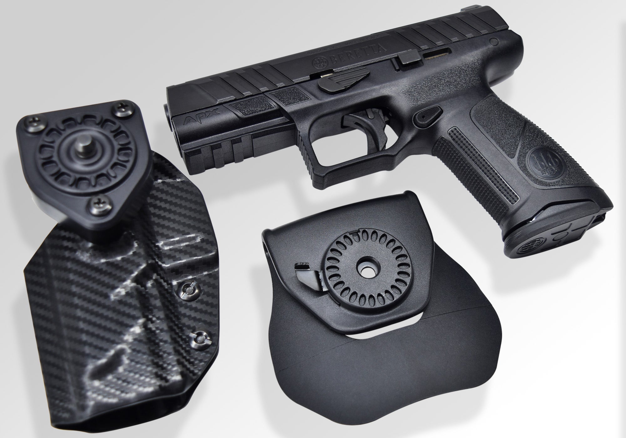Made to fit your firearm like a glove with adjustable retention screws and a 360 degree 'cant'.