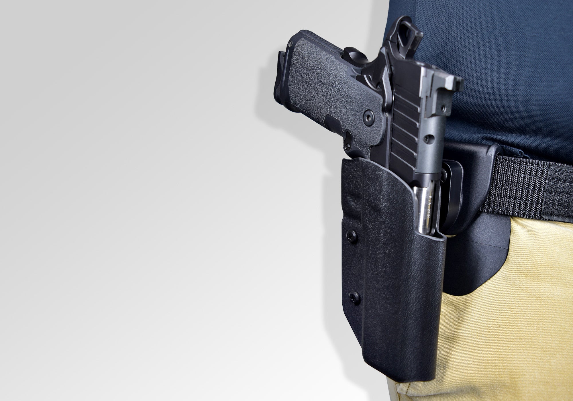 Place the Paddle attachment behind your pants and the holster over your belt for a safe and comfortable way to carry your firearm.